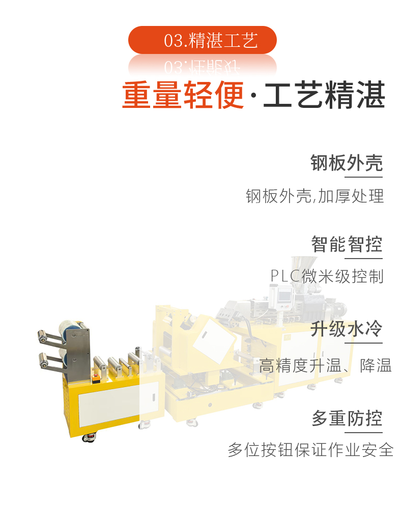 采用擠出機將熱塑性塑料熔融后,通過T型模具形成均勻熔體流延至冷卻輥表面,經(jīng)冷卻定型后收卷成型