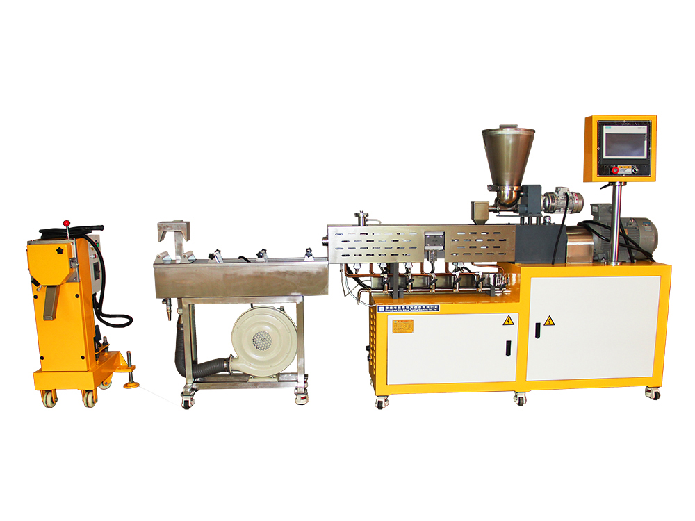 簡介:螺桿的連續(xù)轉(zhuǎn)動反復(fù)強迫物料轉(zhuǎn)向,有助于物料的均勻混合、塑化。在雙螺桿擠出機的加熱、混合,剪切、塑化、壓實排氣作用下,物料塑化成均勻的熔體,并在雙螺桿的擠壓下,通過機頭擠出圓形的條狀料,經(jīng)冷卻水槽水冷后,再經(jīng)切粒機切粒,得到塑膠粒料。本實驗采用水冷拉條冷切法。